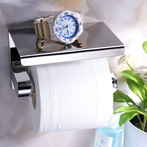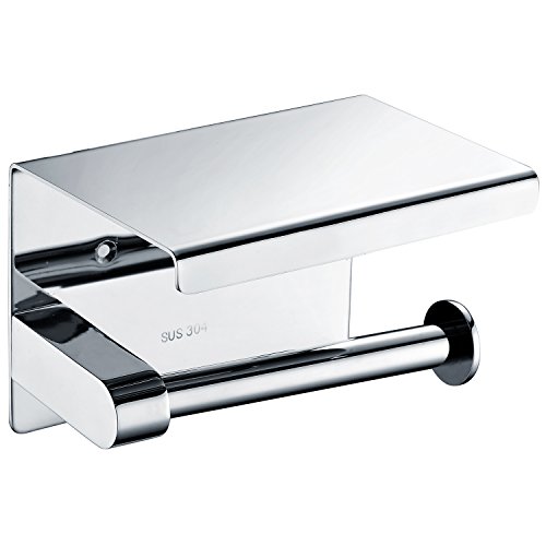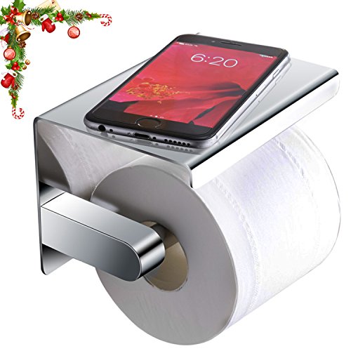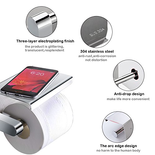 Phone Toilet Paper Holder Wall Mountable Toilet Tissue Holder with Mobile Phone Rack,Polished Chrome