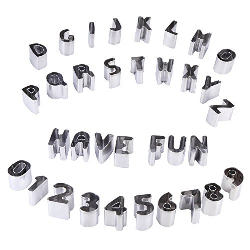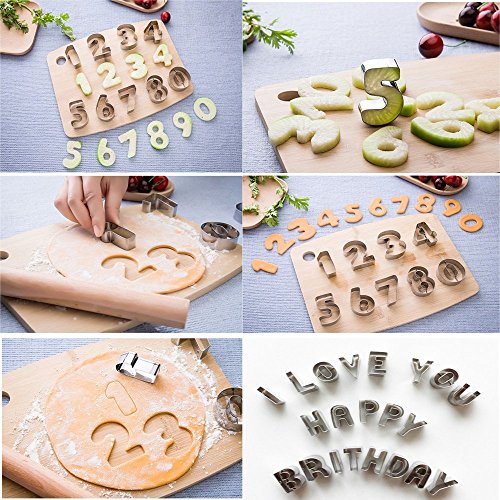 Studio : Ertek Publisher : Ertek Product Description Easy Use Mini Biscuit Vegetable Cutters Use cookies shaped cutting die of fruits and vegetables The front edge of the to be rounded,smooth without hurting the hand, and all sides are flat, safe and easy to use Anytime can used it Whatever Family time, Party, Wedding, Birthday, Christmas, Halloween, Valentine's Day. all can?use it. Specifications:? Material: stainless steel, the thickness of 0.25mm.? Alphabet size: 1.02 x 0.71 x 0.79in Number size: 1.38 x 0.98 x 0.79in Packaging: transparent box (size: 4.72in x 4.72in x 1.02in)? Package include 1)26 x Alphabet cutter 2)10x Number cutter