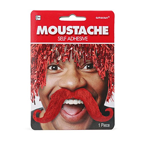 Amscan Party Perfect Team Spirit Handle-Bar Style Moustache Accessory (1 Piece), Red, 5.75 x 4"