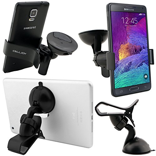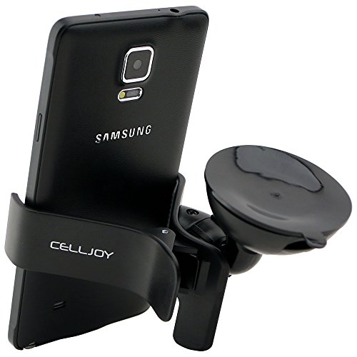 Cell Phone Car Mount (Black) - CellJoy [Grip Claw] Multi-Angle Rotating Universal Smartphone Windshield Dashboard Holster Desk Mount Kick Stand Prop **Lifetime Warranty** - Fits iPhone 6/6 Plus/5/5S/5c/4s, HTC One, Samsung Galaxy, Note 1/2/3/4, Nokia