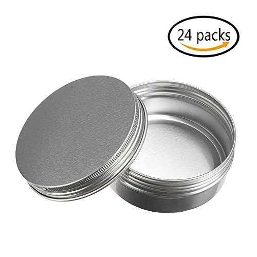 Screw Top Round Aluminum Tins Cosmetic Sample Tin Containers for Storing Lip Balm Lotion Bars Candles Candies Powder DIY Products and Gift Giving 24 Packs