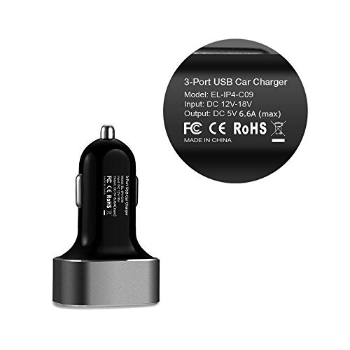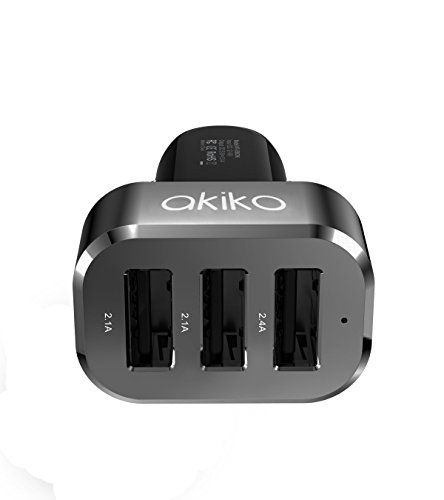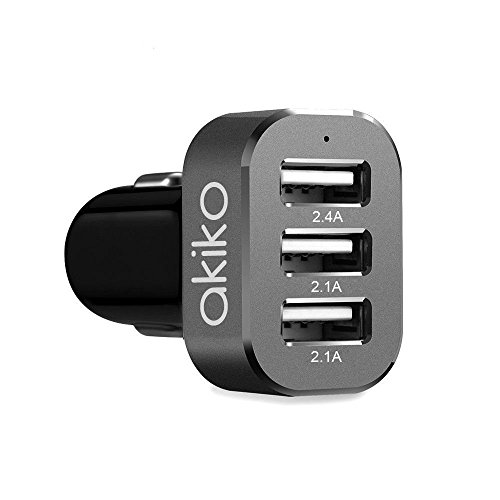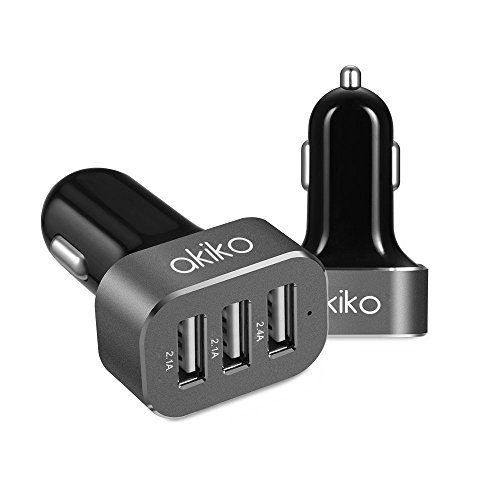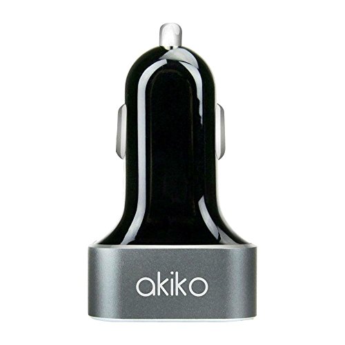 Akiko Smart Power Tri Port Car Charger w/ Intelligent Charging 6.6A/33W Aluminum 3 USB Car Power Adapter,Most Power Car Charger - Retail Packaging