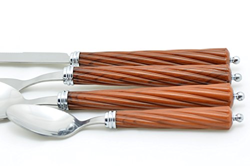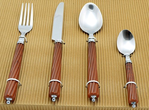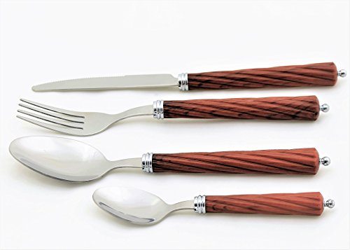 Nature Home Decor RE6112 Rainbow Elite Collection Flatware 24-Piece Service for Six with Dark Wood Finish Resin Handles