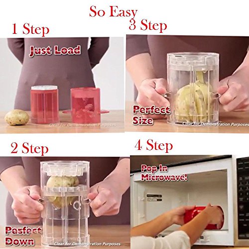 ❤Easy Operation french fries maker works in an easy way. Simply place the full potato that you're looking to frise on the lower compartments, and then use the top housing to press down. As the top housing moves down under the pressure of your hand, the potato is nicely sliced into lovely pieces that will make microwave French fries. This accessory is optimized to fit well with most potatoes regardless of their size. More so, it doesn't require considerable pressure to fries,and then pop in microwave in just minutes, the delicious fresh crisp fries is done. thus can be used effectively by everyone, including kids.