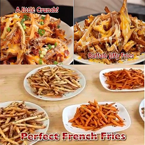 【Save times】No more peeling, chopping, and slicing by hand.This cutter's design uses cross pattern steel blades to cut effortlessly and evenly for perfect results every time.Jiffy fries gives you a fast and convenient way to quickly make French fries