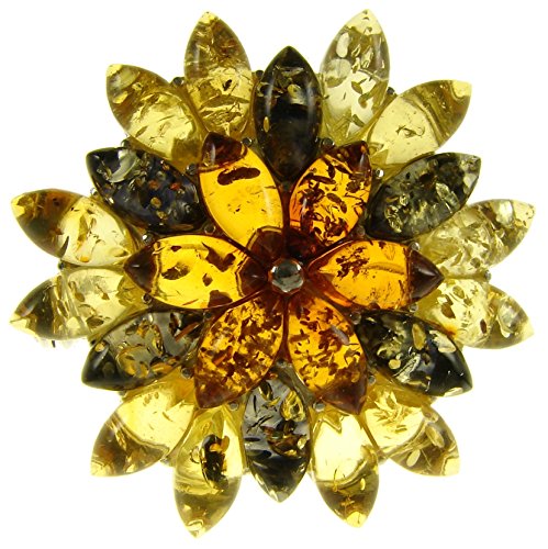 -. Title : Baltic Amber And Sterling Silver 925 Designer Multi-Coloured Flower Leaf Brooch Pin