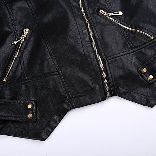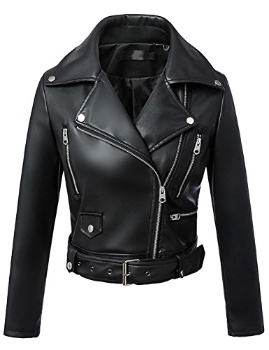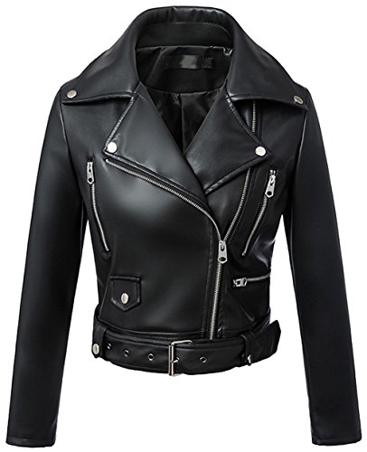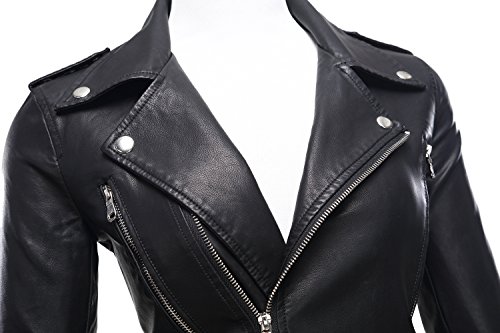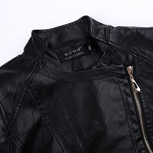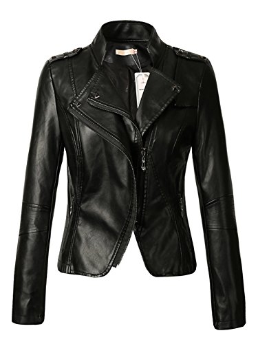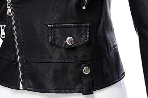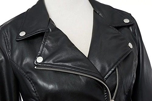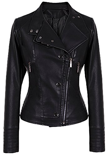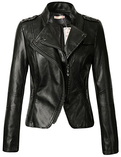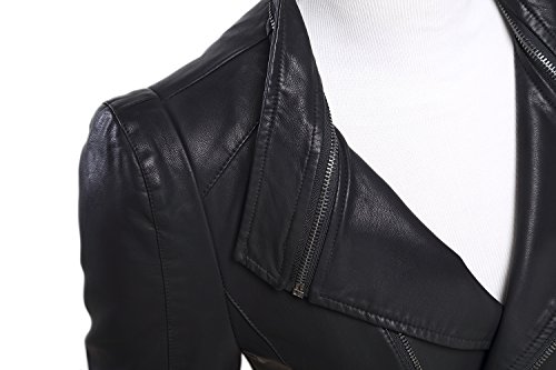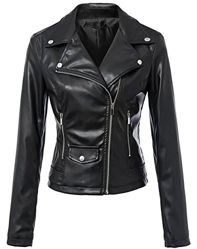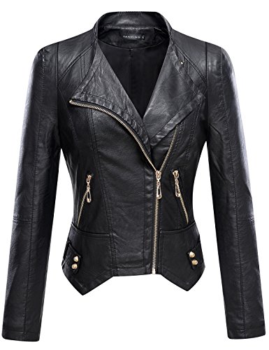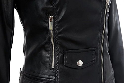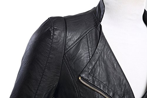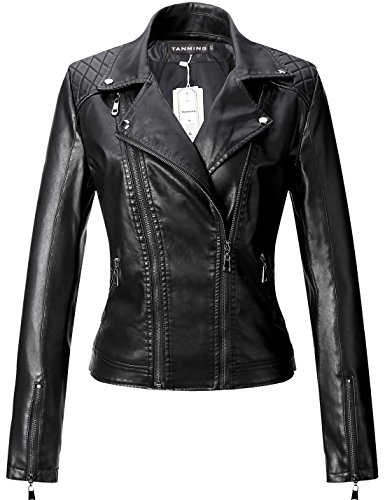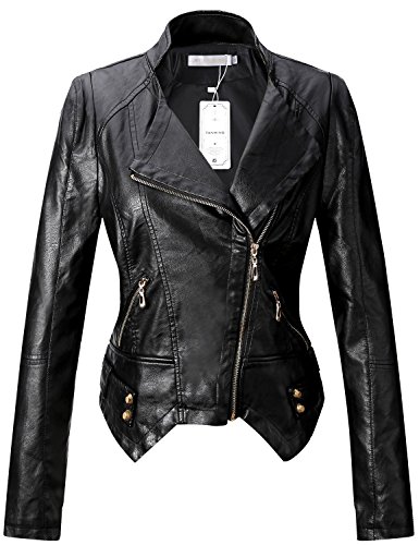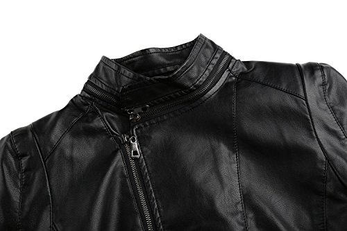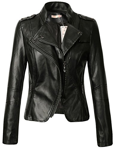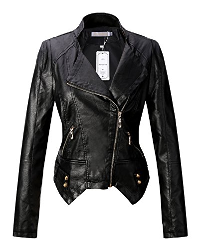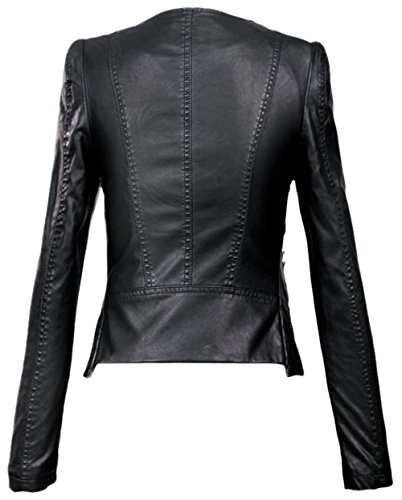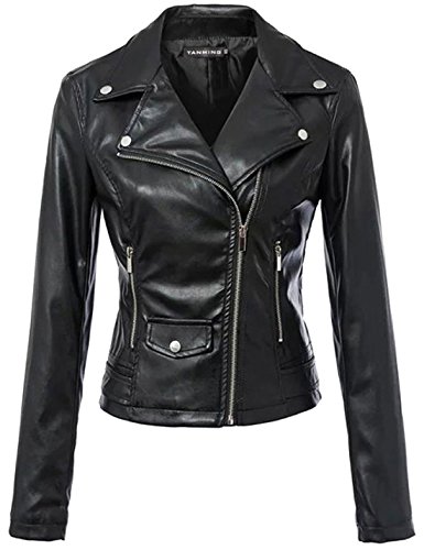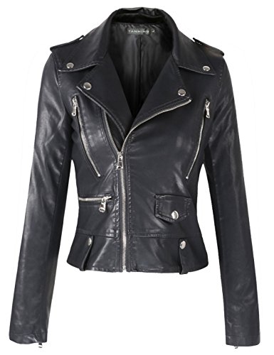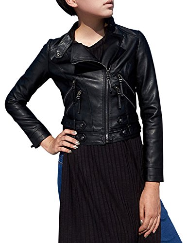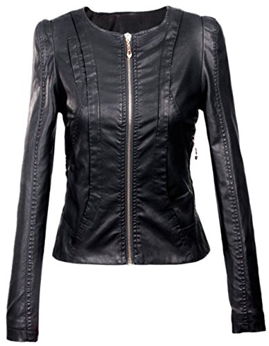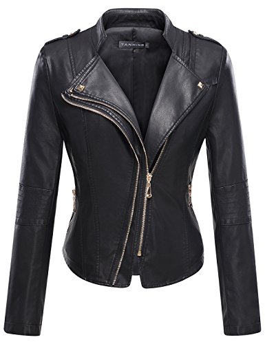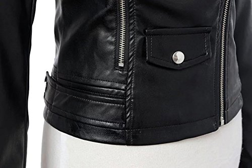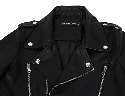 | Tanming Women's Faux Leather Collar Moto Biker Short Coat Jacket |