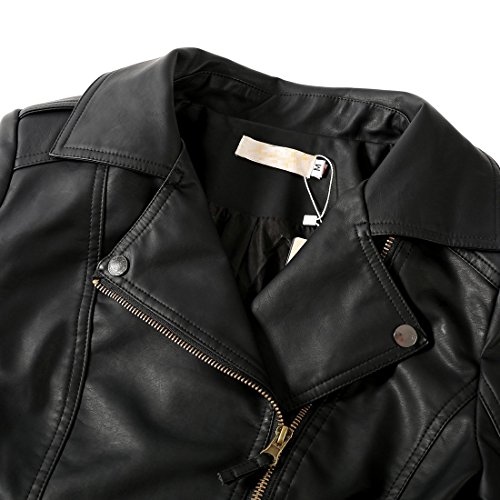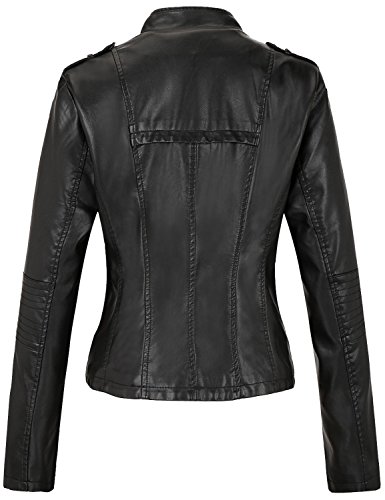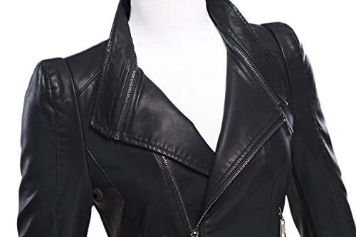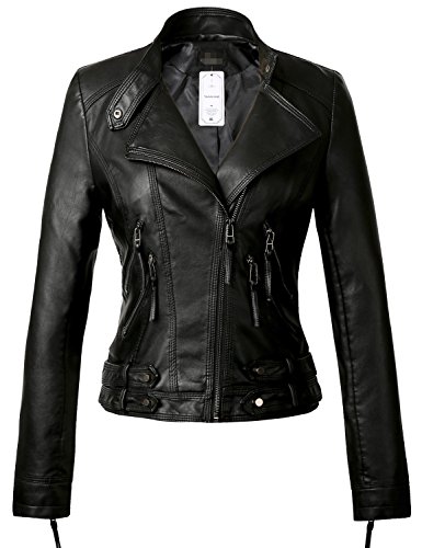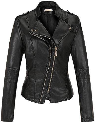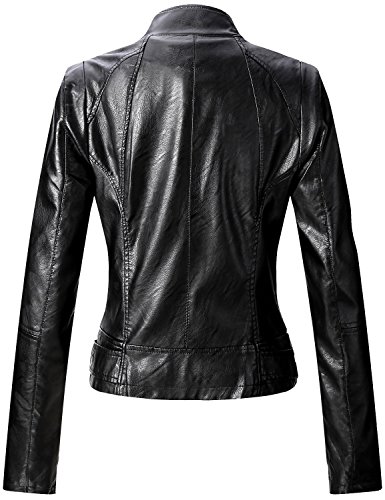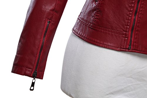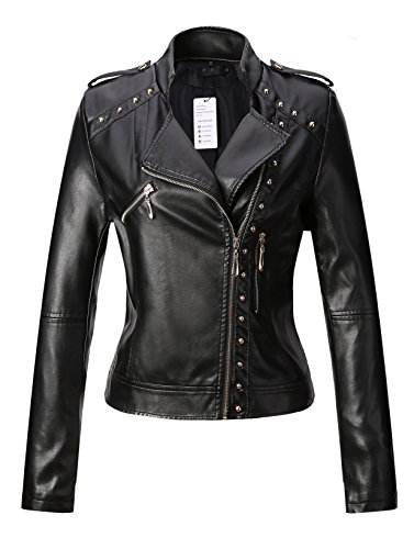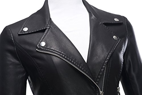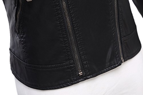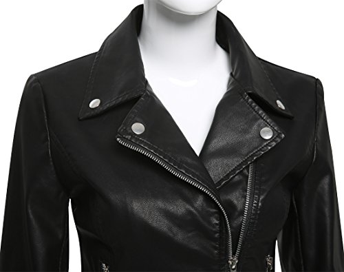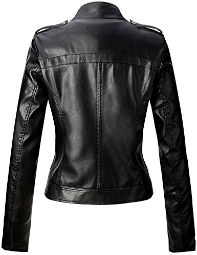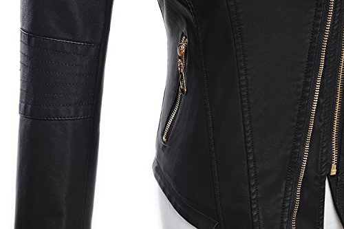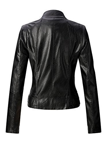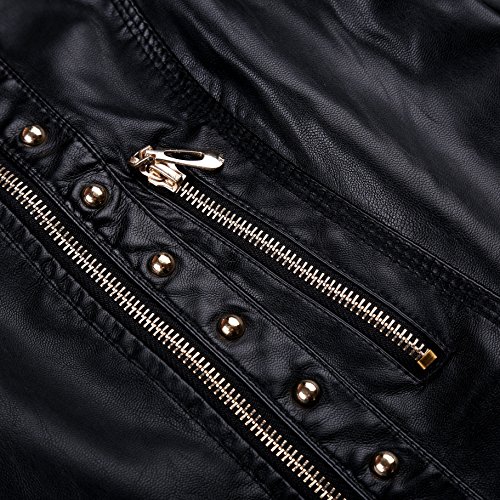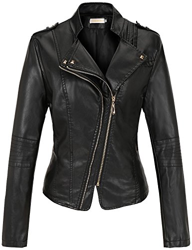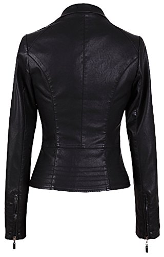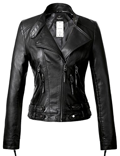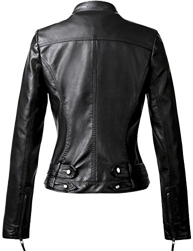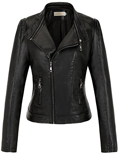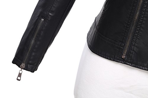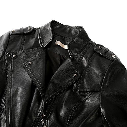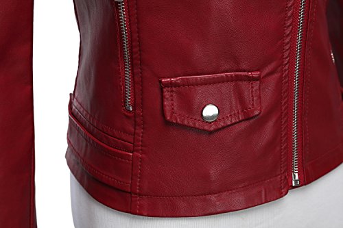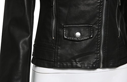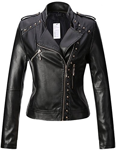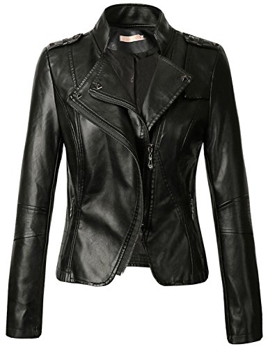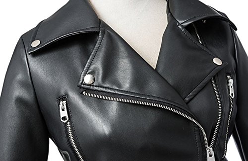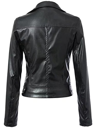 | Tanming Women's Faux Leather Collar Moto Biker Short Coat Jacket |