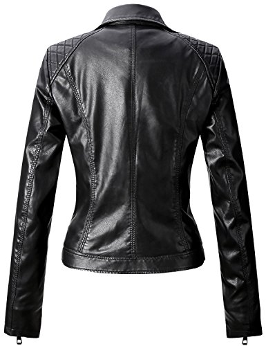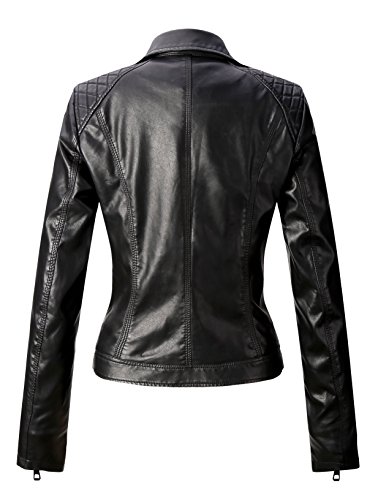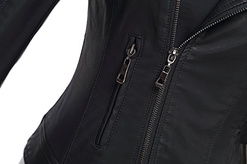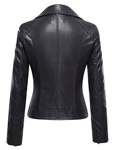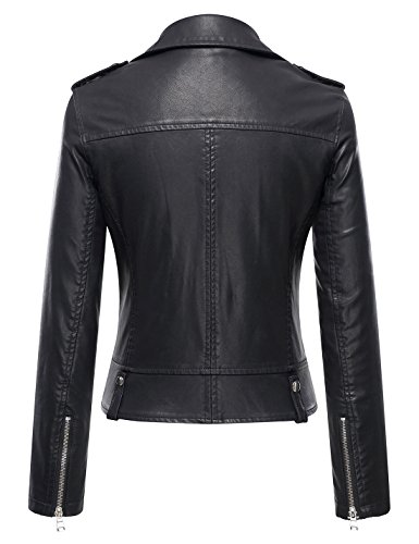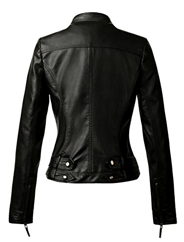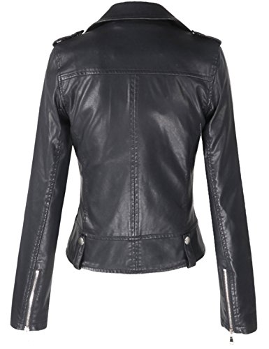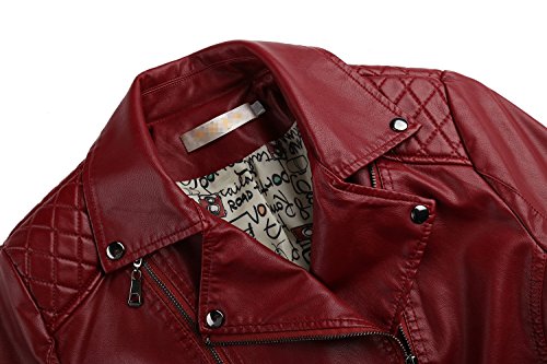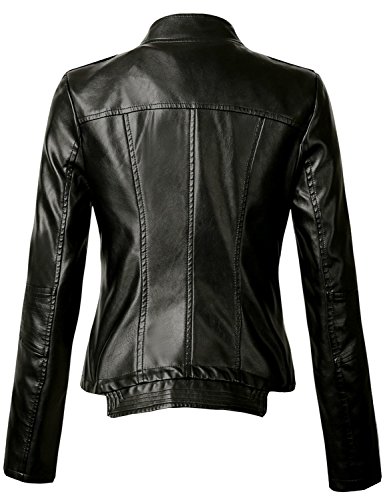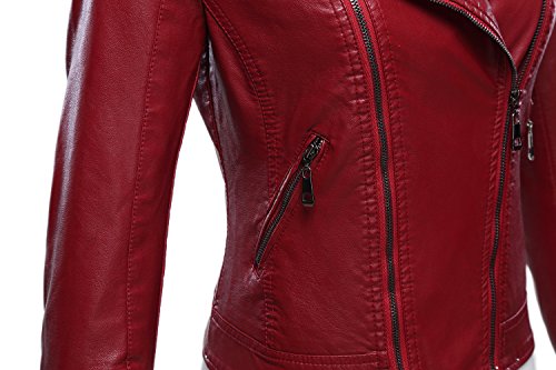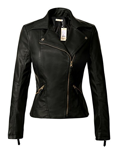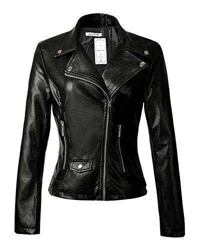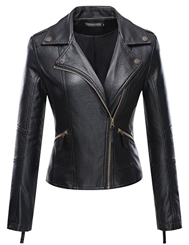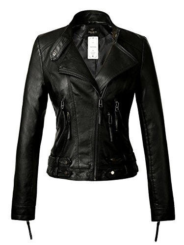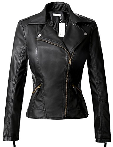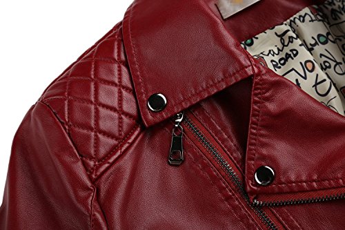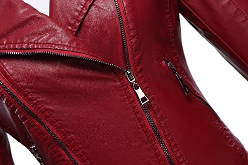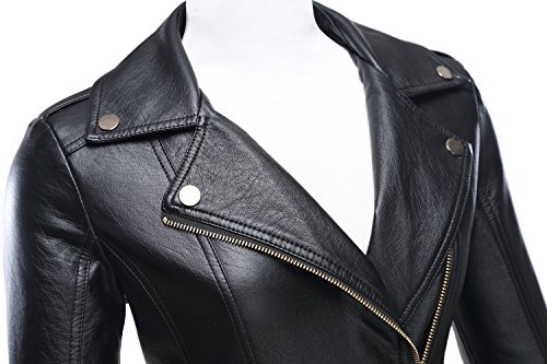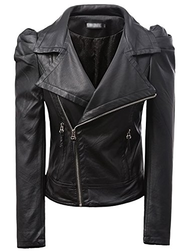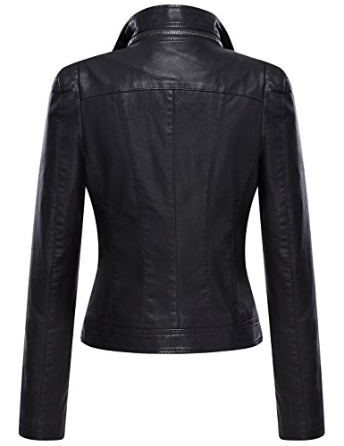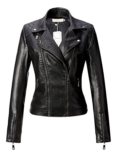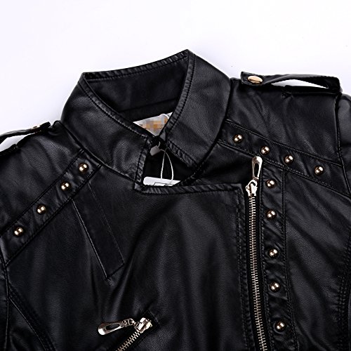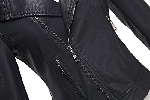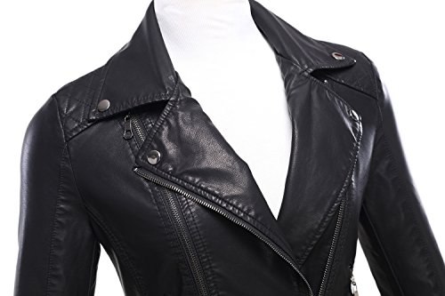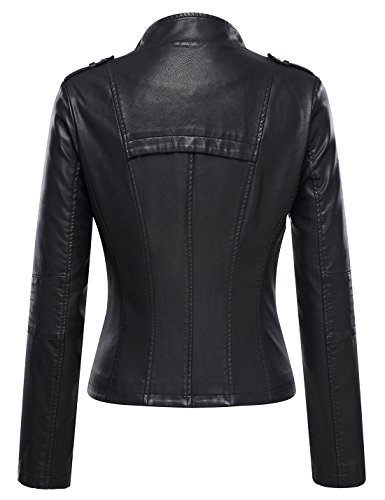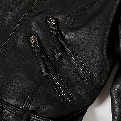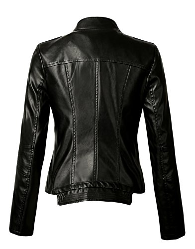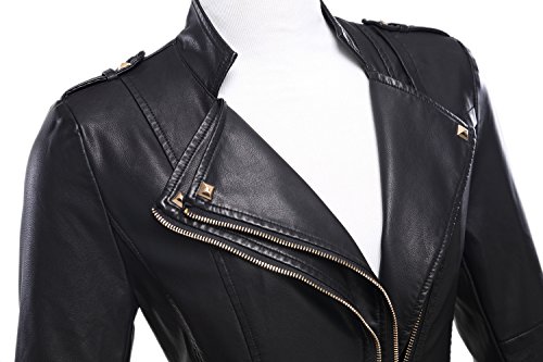 | Tanming Women's Faux Leather Collar Moto Biker Short Coat Jacket |