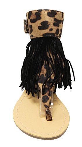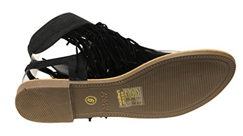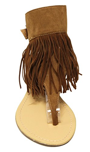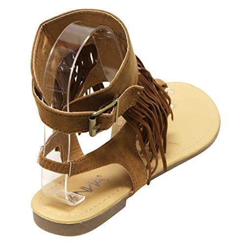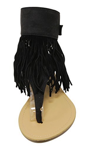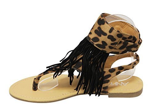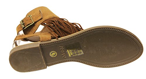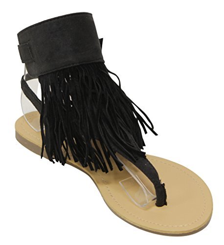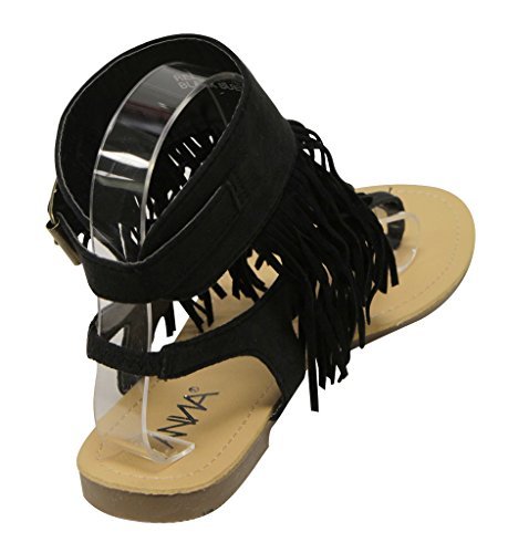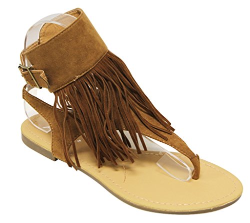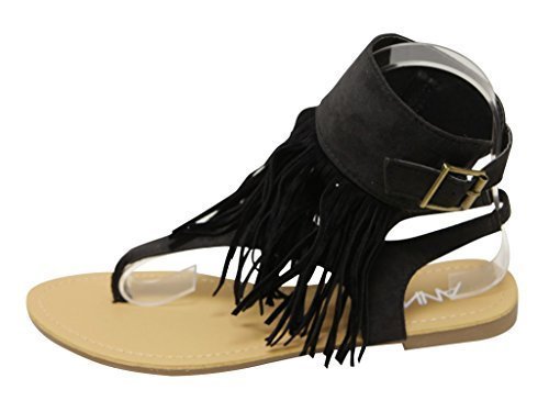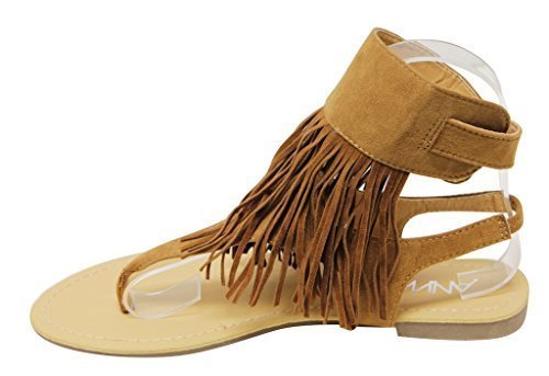 Anna Rebel-1 women's slingback buckled ankle strap fringe suede thong sandals