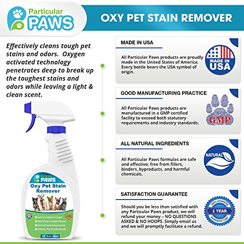 - 100% MONEY-BACK GUARANTEE: Don’t just take our word – try the product yourself with no risk! If you aren’t completely satisfied, we’ll refund your purchase with no hassle guaranteed! OXY Pet Stain Remover even has a 1 year warrantee.