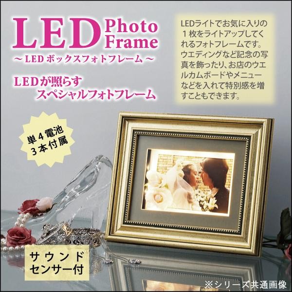 | 音に反応して光が点灯するフォトフレームです。美しい光でムーディーな空間を演出♪奥行きのあるボックスフォトフレーム仕様になっており、立体のオブジェや造花も飾れます。 |
