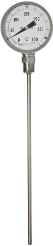Ashcroft EI Series Bimetal Thermometer, 3" Dial Size, 1/2" NPT Every angle Stem Connection, 12" Stem Length, 0°C-300°C Temperature Range