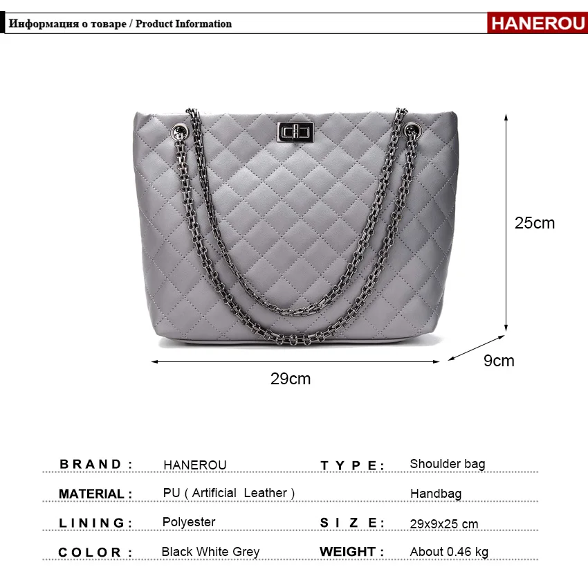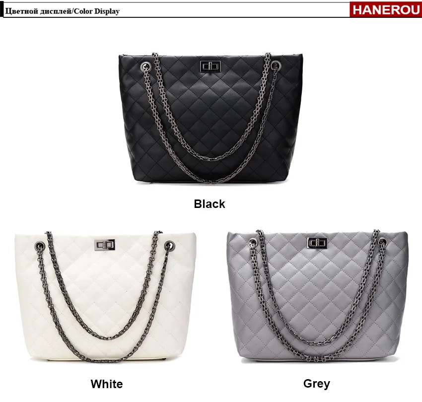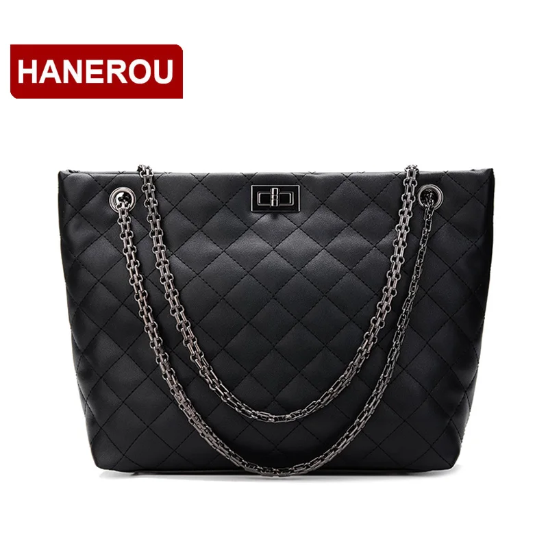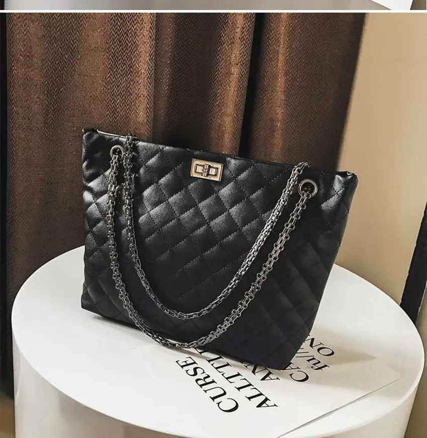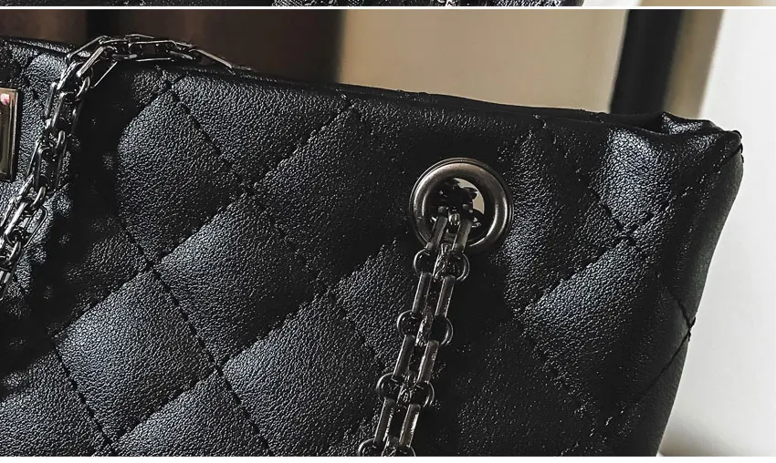 style2:Designer Black Leather Big Crossbody Chain Messenger Bag ForGirl