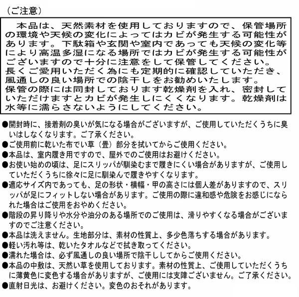 | 素材・材質 | 生地:ポリエステル 中敷:い草 中材・底材:EVA樹脂 |