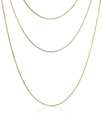 -. Title : Gold-Plated Sterling Silver Box-Chain Three-Piece Necklace Set