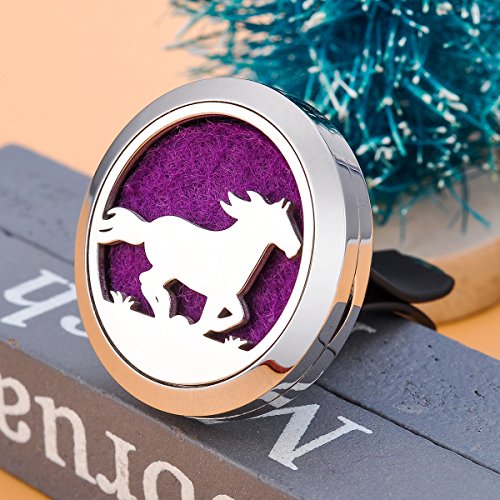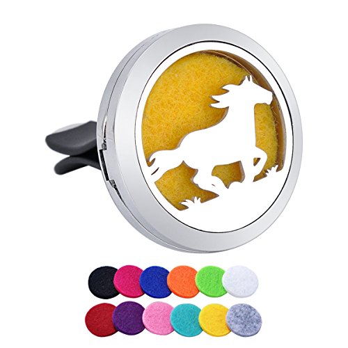 Running Horse Aromatherapy Car Air Freshener Stainless Steel Essential Oil Diffuser Locket Car Vent Clip 12 Refill Pads