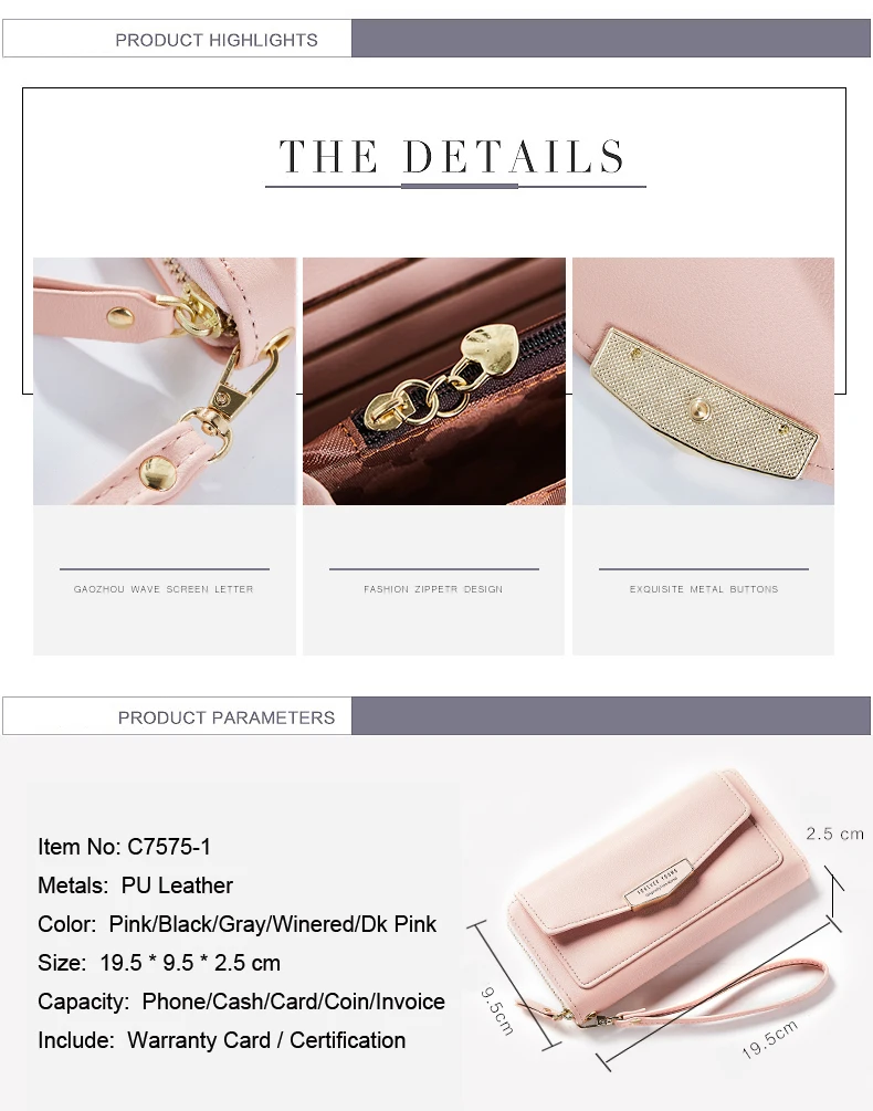 Interior:Coin Pocket,Cell Phone Pocket,Card Holder,Zipper Poucht,Interior Compartment,Note Compartment,Interior Zipper Pocket,Interior Slot Pocket