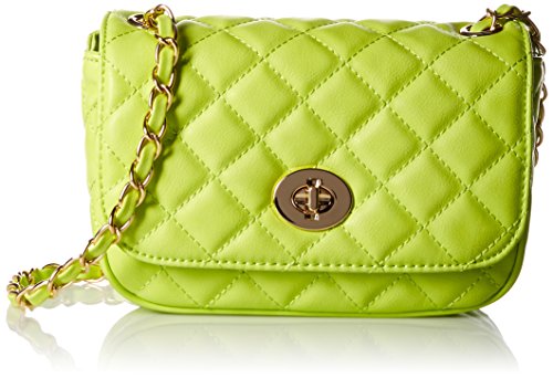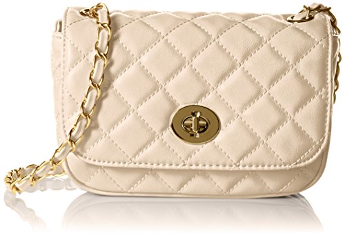 Small quilted crossbody w/turnlock and chain strap. Dim: 22*14*8