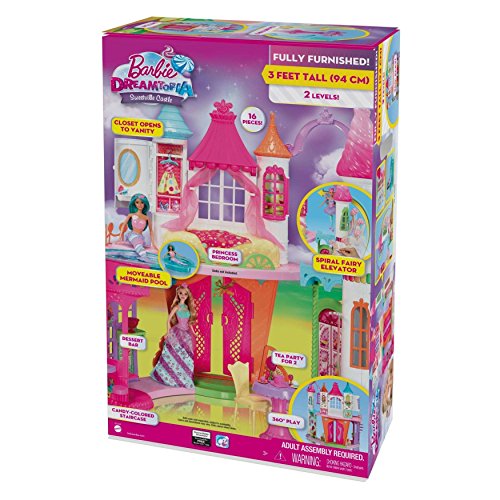 -. Binding : Toy -. Brand : Dreamtopia Barbie -. EAN : 7109763909711 -. Feature : Two stories and eight distinct play spaces inspire all kinds of storytelling! Age Range: 3Y+ / Inspired by the magic of Dreamtopia's Sweetville Kingdom, the Barbie Dreamtopia Sweetville Castle play set has bright colors and signature details on all angles, like cut-outs, windows and turrets! / Travel between floors using the colorful spiraling steps or the elevator that easily swirls dolls up and down with child activation / Collect all of the Barbie Dreamtopia Sweetville dolls and accessories to fill the house and satisfy your sweet tooth (each sold separately) -. Genre : Entertainment -. IsAdultProduct : 0 -. ItemPartNumber : DYX-32 -. Label : Dreamtopia Barbie -. Manufacturer : Dreamtopia Barbie -. MPN : DYX-32 -. PartNumber : DYX-32 -. ProductGroup : Toy -. ProductTypeName : TOYS_AND_GAMES -. Publisher : Dreamtopia Barbie -. Studio : Dreamtopia Barbie -. Title : Barbie Dollhouse Dreamtopia Magic Sweetville Castle