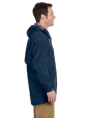 Product Description 100% taslon nylon shell w/microfleece lining lightweight polyfill insulation; Water-resistant; Drawcord hem ; An extra 5 of length for protection; InconspicuZip™ for easy embroidery access; One accessible multimedia zip pocket; Two large hand-warmer pockets; Adjustable cuffs; " 0