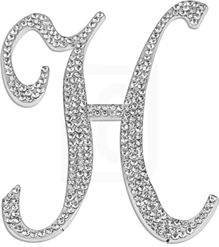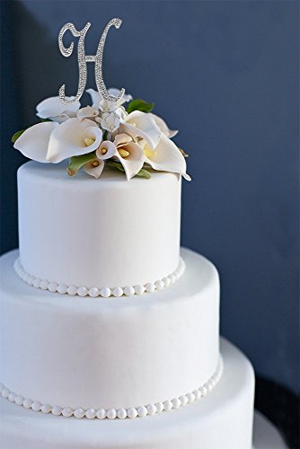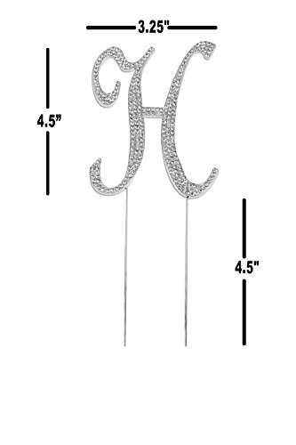 Letter H, Initials, Happy Birthday Cake Topper, Wedding, Anniversary, Vow Renewal, Crystal Rhinestones on Silver Metal, Party Decorations, Favors
