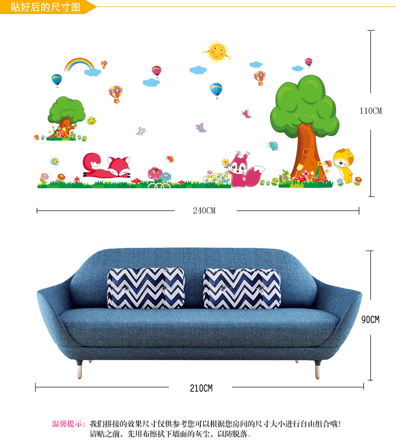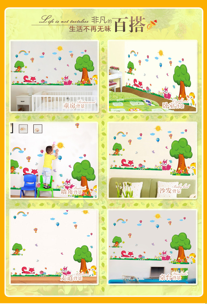 卡通动漫墙贴 幼儿园教室布置装饰儿童房背景贴画环保贴纸可移除