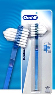 Studio : Oralb Publisher : Oralb Binding : Health and Beauty Product Description Dentures require daily brushing for freshness and effective stain removal, because effervescent cleansers alone cannot remove all food particles and stains. The Oral-B Denture Brush helps you get a more thorough clean. Product Features A large, multi-tufted brushhead helps remove food particles and stains easily A smaller, angle-trimmed brushhead for hard-to-reach surfaces Firm, nylon bristles are strong and resilient Large, easy-grip handle so you can take control 0