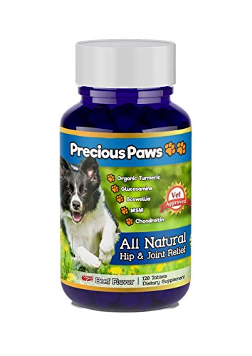 -. Title : Precious Paws All Natural Hip & Joint Pain Relief for Dogs with Organic Turmeric, Frankincense, Glucosamine, MSM, and Chondroitin. 120 Beef Flavored Tablets