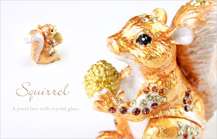 | ジュエリーボックスと言えば、指輪やピアス、ネックレスなどのアクセサリーを入れる引き出し型のケースを思い浮かべる方が多いかもしれません。 ピィアースのジュエリーボックスは、動物や花などをモチーフに作られ、合金製でずっしりとした重さがあります。また高品質のクリスタルガラスを贅沢に使用。まるでジュエリーボックスそのものが宝石のような、高級感溢れる仕上がりです。 小物入れとしても使えるように開閉口には磁石が取り付けてあり、アクセサリーなどなくしやすいアイテムの収納ができます。キラキラと美しく輝く宝石箱は、そのまま飾って楽しめるインテリア雑貨として多くの方に愛されています。 国内トップクラスのジュエリーボックスメーカーであるピィアースは、2004年ごろから本格的に宝石箱の製造を始め、現在のジュエリーボックスはなんと300種類以上。大規模展示会でもご好評いただいており、全国有名百貨店でも販売されています。 自社工場でひとつひとつ丁寧に手作りし、原型作成、研磨、加工、着色、小さなクリスタルガラスの取り付けなども全て手作業で行われるこだわりのハンドメイド品。完成後は厳しい検品の後、丁寧に梱包作業をしお客様にお届けしております。 ピィアース商品は、全国有名百貨店および全国有名宝石店チェーンにてお取り扱いいただいている高品質商品です。 ★自分へのご褒美に…コレクションして並べて飾ると、さらにかわいらしさUP! ★恋人へのプレゼント…中にアクセサリーを入れて、サプライズな贈り物として ★家族への感謝ギフト…お母さんや姉妹へ、日頃のありがとうの気持ちを込めて ★誕生日プレゼント…お友達の喜ぶ顔が見たいから、いつもと違うキラキラギフトを ★小さな女の子へ…まるでお姫様が使っているようなキラキラ宝石箱は女の子の憧れ! |