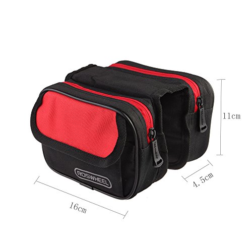 Studio : Docooler Publisher : Docooler Product Description Note: Accessories in the pictures displayed are for illustration purpose only, not included in the package list. Specifications: Brand: Roswheel Material: Polyester Color: Blue Black Capacity: 1.5L Bag size: 16 * 11 * 4.5cm / 6.3 * 4.3 * 1.8in (one side) Bag weight: 140g / 5oz Package List: 1 * Bicycle Front Tube Bag 0