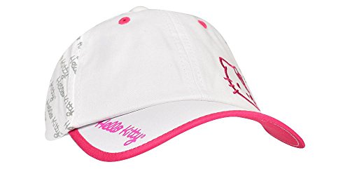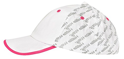 Say, "Hello!" to Hello Kitty! The cute Hello Kitty Script Hat features a terry sweatband, preshaped bill with contrast trim and underside, embroidered Hello Kitty on front left side, contrast printed script pattern, and back buckle for adjustable fit.
