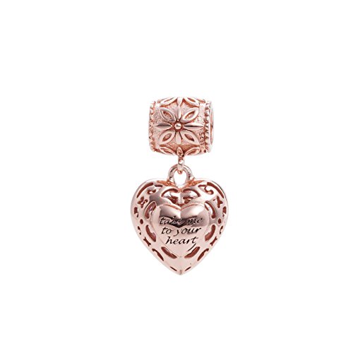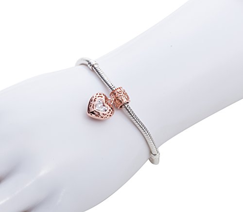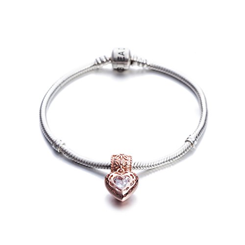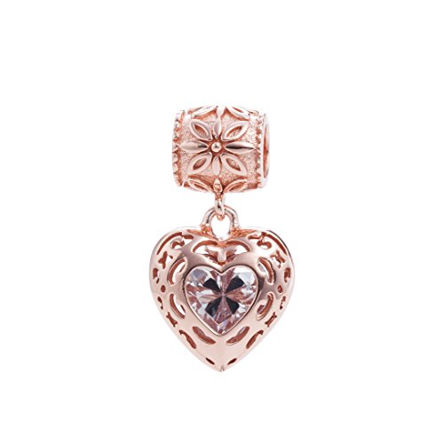 -. Title : Rose Gold Heart Crystal Charms Pendant Solid 925 Sterling Silver Love Dangle Bead Valentines Day Charms