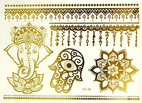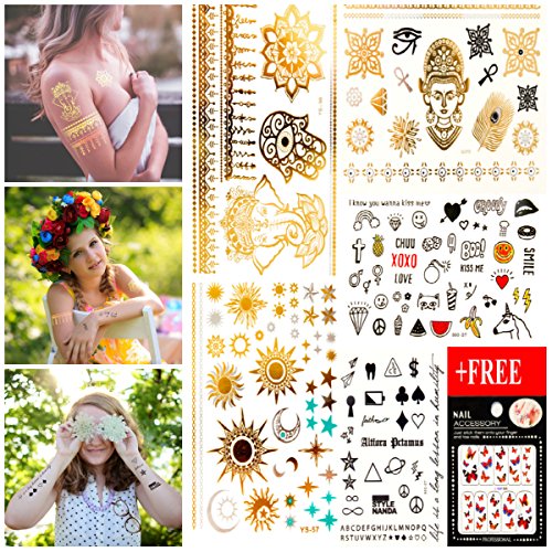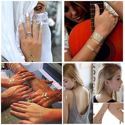 -. Feature : LUXURY JEWELRY TATTOO: OVER 130+ new & stunning designs that match the vibrant images shown. / PREMIUM quality metalic, black temporary tattoos will last several days and keep its flash & glitter look. Not to mention, they're waterproof / SAFE - these stylish fake jewelry tattoos are non-toxic and fun for all ages, including kids & adults, and can be worn anywhere on your body / QUICK & EASY TO APPLY - up your look in less than 1 minute with this hot new trend. These stylish foil tattoos are easily removable by rubbing baby oil. Wear it on your arm, leg, back, shoulder, face, or even your hair! / HAPPY CUSTOMER GUARANTEE. We're confident you'll love the new bling, so your order is backed by our 30-day money back for any reason, guaranteed. Be sure to check out our other collections for more stunning designs.