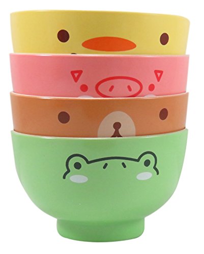 CUTENESS OVERLOAD: Why settle for hum-drum bowls when you can have these bright, fun-filled animal design ones? This set of 4 adorable small plastic bowls, holding 10 fluid ounces (4.1” x 2.5”) come in a cute chick, pig, bear and frog design--dishwasher safe.