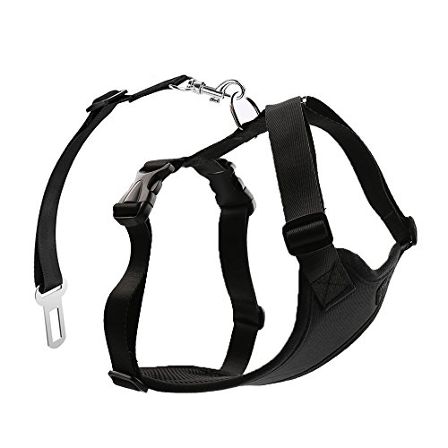 -. Title : DogJog Dog Car Harness Plus Connector Strap Safety Vest Harness Adjustable Double Breathable Mesh Fabric Travel Regular Vest Harness with Car Seat Belt Lead Clip