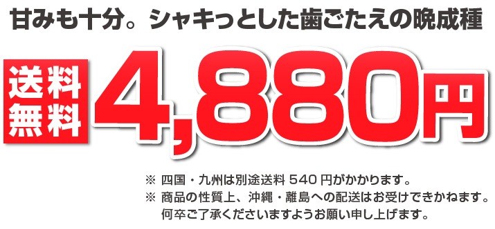 | お届け時期 | 出荷予定は8月下旬頃から9月上旬頃まで。注意 ※この商品は日付指定が出来ません。出荷後にメールで到着日をお知らせいたします。 |