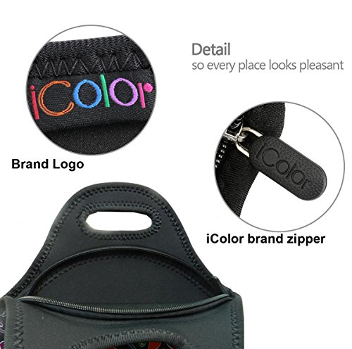 IDEAL FOOD TEMPERATURES: Our ICOLOR Lunch Bags Made of Fine Neoprene Material,Vinyl-free, PVC-free lunch bag keeps your food cold or hot depending on your needs, the Fabric Keeps Food Hot/Cold for 2-4 Hours,if Use with a ice Pack,it will Insulated a longer time,so you can enjoy perfect tasting meals whenever it's time for lunch.
