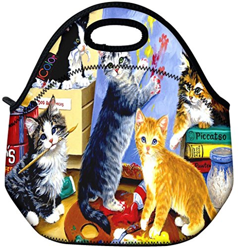 ICOLOR Various Cats Insulated Neoprene Lunch Bag Tote Handbag lunchbox Food Container Gourmet Tote Cooler warm Pouch For School work Office