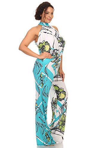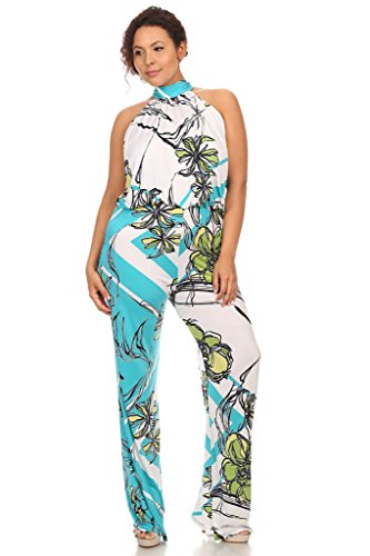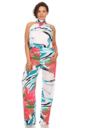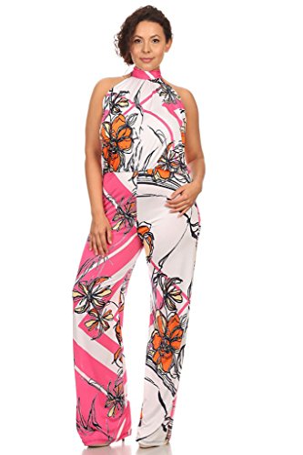 Product Description Super cute and trendy, this high neck halter jumpsuit is the perfect addition to your wardrobe. Featuring a waist band and keyhole tie at the base of the neck in the back. Made of stretch polyester. 0