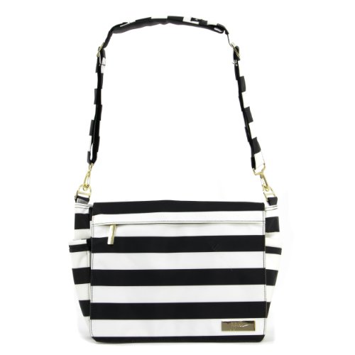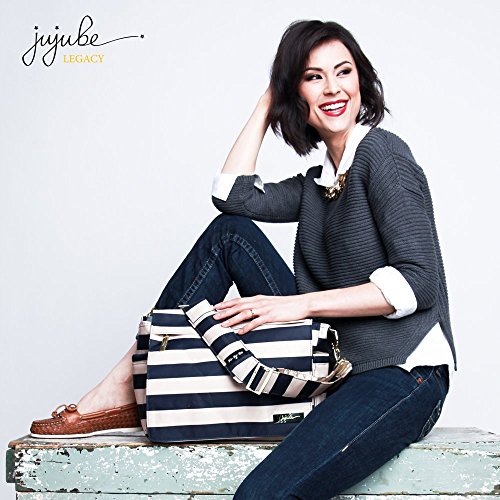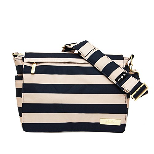 The Ju-Ju-Be Legacy Collection Better Be Messenger Diaper Bag is a smart bag that has an innovative design and a number of pockets for extra versatility. Is your diaper bag machine washable? It better be. Is your diaper bag lined with light colored, antimicrobial linings? It better be. This messenger style diaper bag is perfect for any mom or dad on-the-go. The outer fabric is treated with Teflon fabric protector, making it easy to repel stains and keep your Better Be bag clean. The front "mommy" zippered pocket is large enough to hold smartphones, wallets, keys and other personal items. Inside are (2) smaller zippered pockets with a sunglass case, lipstick loop and key fob stretch cord. The main pocket is large enough for a supply of diapers, wipes, soft toys, extra clothes and other items for a quick trip away from the house. Bottle pockets are located on either side of the bag and insulated by 3M Thinsulate to keep all your items hot or cold. Located on the external flap is a zippered pocket, perfect for storing a few additional diapers. The back pocket is designed with crumb drains to keep the better be clean. The back pocket also contains a matching memory foam changing pad. This bag is machine washable and measures 14-inches by 11-inches by 5.5-inches in size. The First Mate print features navy and tan horizontal stripes with tan lining. The print is accented by gold, metal hardware. All Ju-Ju-Be Bags come with a Lifetime Limited Warranty against manufacturing defects when purchased from an Authorized Ju-Ju-Be Dealer. Authorized Dealers can be found in the images. Founded in 2005, Ju-Ju-Be is a Southern California company that uses science, style, and attitude to create diaper bags, purses and other fashionable accessories. Ju-Ju-Be assimilated the most advanced technology possible to create a stylish and intelligent product line that's unrivaled in the industry.Feature