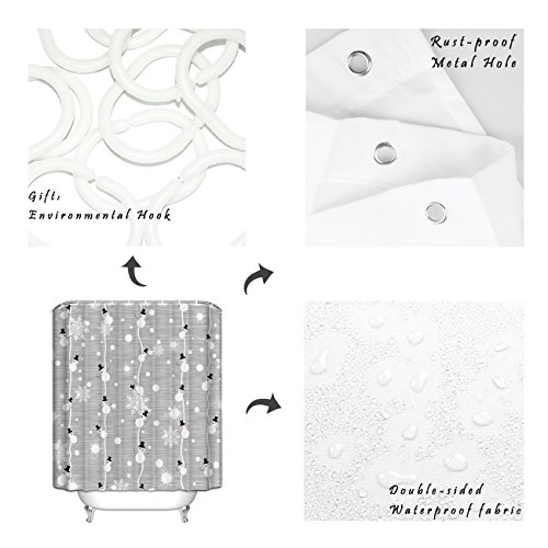 Libaoge Winter Snowman and Shiny Snowflake Grey Mildew Free Waterproof Fabric Polyester Shower Curtain