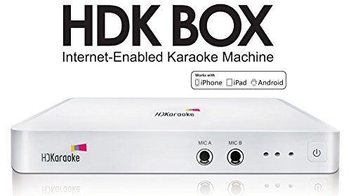 HDK Box is the smartest streaming karaoke machine ever. It uses internet streaming and downloading technology, providing direct connection to our exclusive cloud library. The slim and portable HDK Box offers the most convenient, high quality karaoke experience anytime anywhere. Controller App for iPhone/iPad/Android makes song selection easier than ever. HDK Box is one of the first karaoke machine supports App Remote Control for iPad, iPhone and Android. Users can use smart phones and tablets to control the selection of songs and all other operations. HDK Box has a large licensed karaoke library, providing over 7,000 English licensed karaoke content in HD for immediate stream and download. In total, 15,000 songs will be gradually added into the library. It also automatically update new songs weekly. HDK Box has online streaming technology and a large capacity built-in hard drive. The innovative compact design makes HDK Box portable. Only 8.0"x 4.7"x 1.3", and weighing just 2.1lb, makes it easy to use at home or take it to a friend's house party. ***SUBSCRIPTION***This Listing is for HDK Box and 1-month free English Song Subscription (Buy 1-month $9.99 get 1-month free subscription, you need to pay for the first month subscription and get the second month subscription free) You can also purchase songs and service separately. Song service options, Unlimited Access Monthly Subscription (works like Netflix): $9.99/Month or A La Carte Song Purchase (works like iTunes): $0.99/Song. This is the English version of the HDK Box. For Chinese version and Chinese song subscription, please contact HDKaraoke customer service. ***MICROPHONE INPUT***HDK Box supports both wired or wireless microphones. However it requires a QTR 1/4'' (TS) microphone cable. TRS won't work. ***CUSTOMER SERVICE HOURS*** 10:00 am - 7:00 pm PST, 7 days a week, 1-877-435-8966, or email us at info@hdkaraoke.comFeature