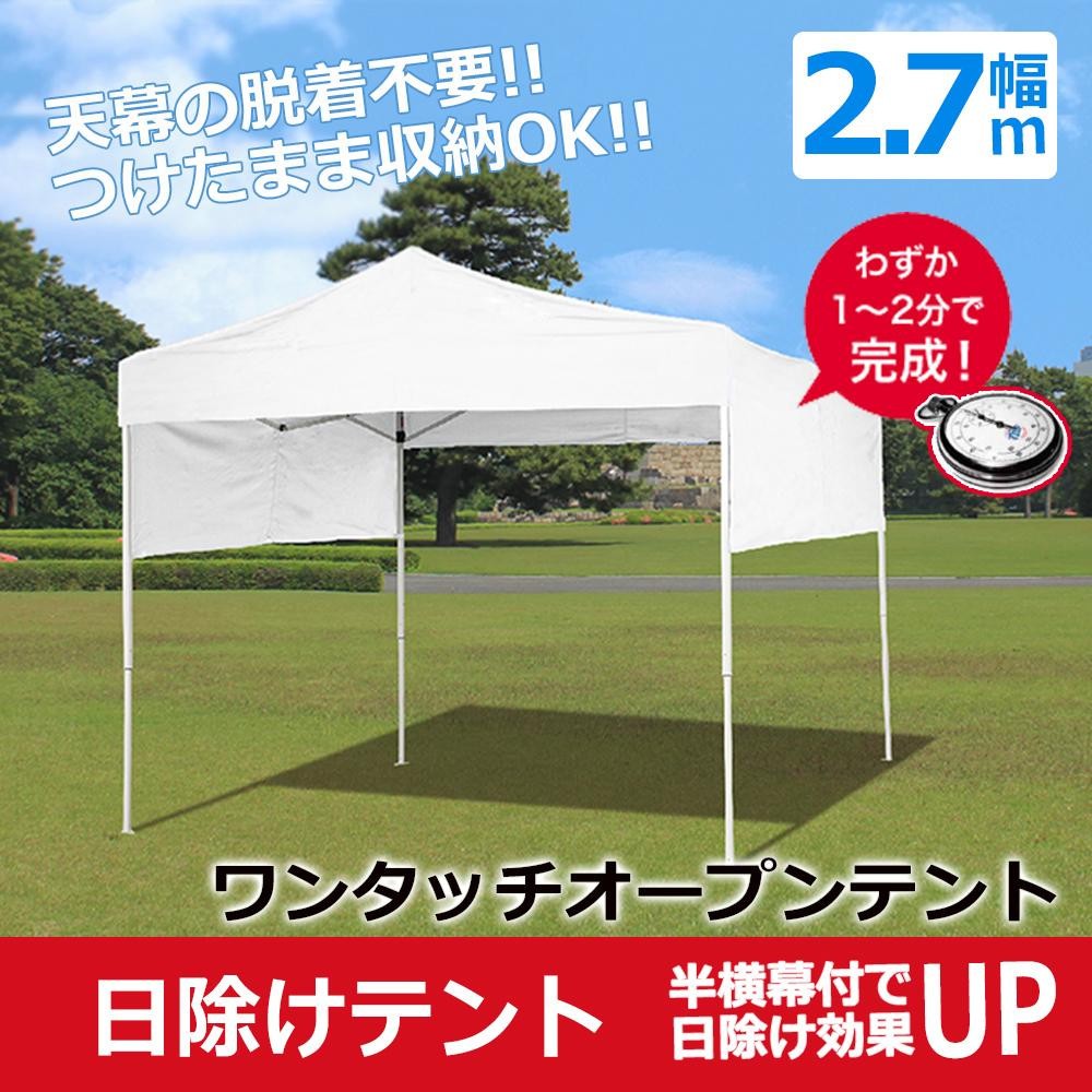 | 組み立ていらずで、開くだけでテントの設営ができます。野外・屋外でのお祭りやイベントに適しているテントです。2人で1~2分で設営でき、天幕をフレームに付けたまま収納できます。半横幕付きなので日除け率UP!! |