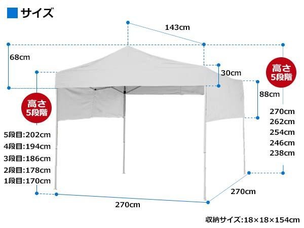 | サイズ | 270cm×270cm、収納サイズ:18×18×154cm 個装サイズ:20×22×156cm |