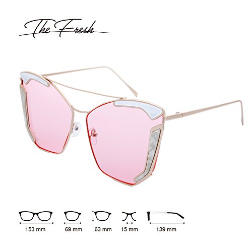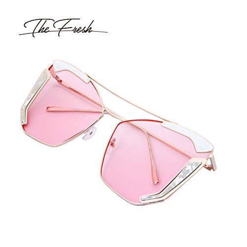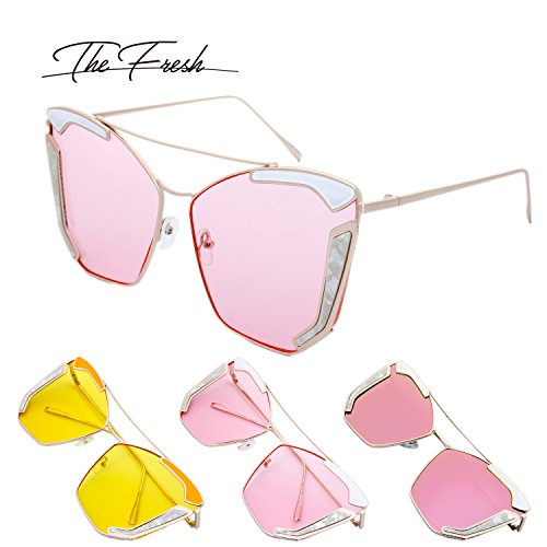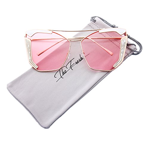 The Fresh Fashion Cat Eye Flat Lens Street Metal Frame Oversized Party Sunglasses Gift Box
