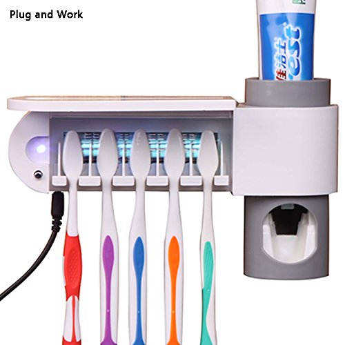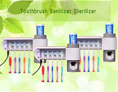 3-in-1: Toothpaste dispenser, toothbrush holder and Toothbrush Sanitizer Sterilizer.