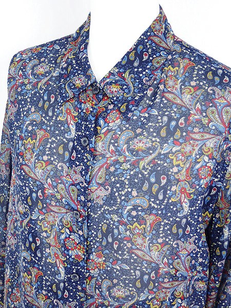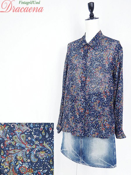 Ladies ブランドLiz claiborn リズクレイボーン カラー紺ベース メール便可 コンディション★★★ 素材レーヨン 表記サイズM スタッフコメント透け感あり。 実寸サイズ 着丈 70 cm 身幅 53 cm 肩幅 42 cm 袖丈 55 cm ※ウエスト・ヒップ以外は平置き採寸