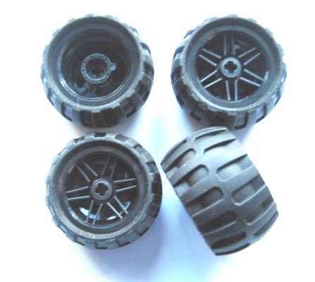 -. Feature : L.E.G.O TECHNIC - 4 Räder mit 43,2x26 Ballonreifen mit Felge in schwarz für Technik - Sets - 56145 / 61481 / Neuware ohne Originalverpackung.