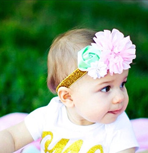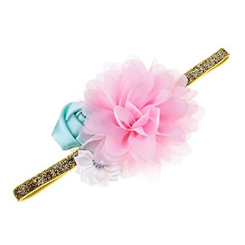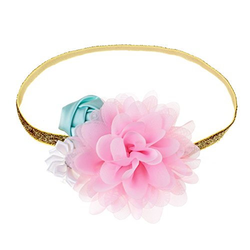 (Floral Fall)/Accessories/Hair Accessories/DIRECT FROM USA/Floral Fall Baby Girls Elastic Gold Shiny Hair Bands Crystal Pink Chiion flower Headbands BY-43